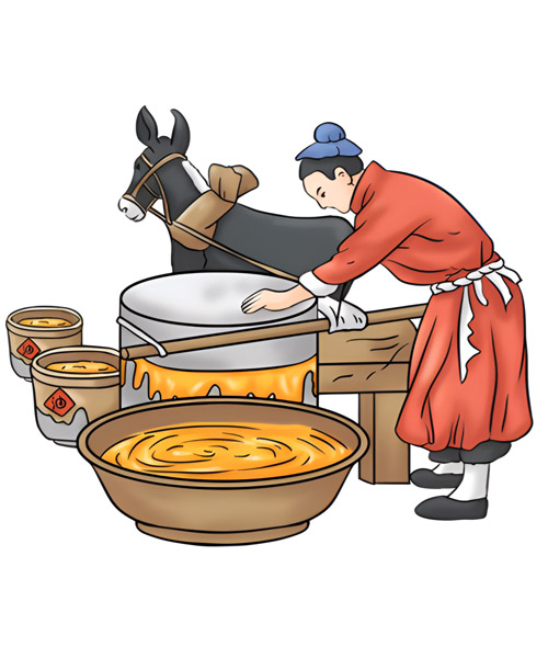 • 將炒好的芝麻用石磨磨成芝麻醬。芝麻醬磨的越細(xì)越好,使油料細(xì)胞充分破裂,以便取出油脂。